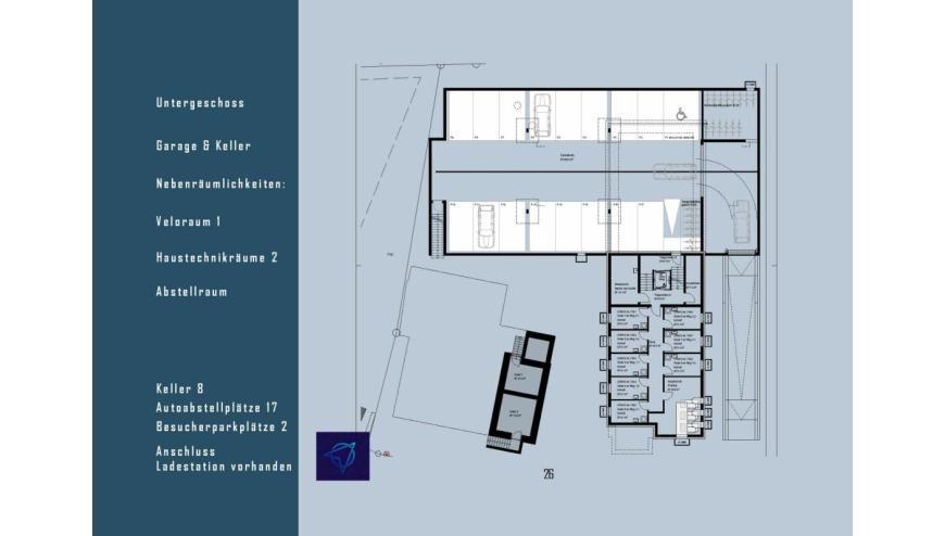 Das projektierte Mehrfamilienhaus umfasst insgesamt 8 Wohnungen und eine Tiefgarage mit 17 Autoeinstellplätzen.