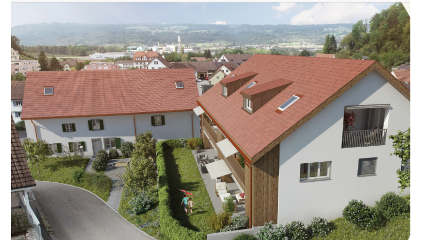 Auf dem Land leben und doch zentral wohnen. Im Dorfzentrum wurden zwei Mehrfamilienhäuser (Haus A und Haus B) mit vier beziehungsweise sechs Eigentumswohnungen geplant. Haus B ist ein echtes, kernsaniertes Bauernhaus, das derzeit noch im Bau ist. Haus A wurde im 2023 bereits gebaut. Ein Neubau mit Lift, nimmt die Details der alten Scheune in der Fassade auf und verbindet die Historie mit der Moderne in einem neuen Dorfbild.