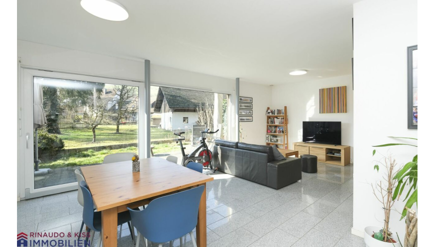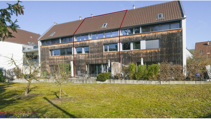 Dieses nicht alltägliche Reihenmittelhaus gehört zur ?Überbauung auf dem Sonnenplatz?. Die Überbauung umfasst insgesamt 3 Wohnungen und 3 Reihenhäuser. Die Einstellhalle wird gemeinsam benutzt. Die Liegenschaft befindet sich an bevorzugter und sehr zentraler Lage in einem ruhigen und gepflegten Wohnquartier mit ländlichem Charakter. Das Dorfzentrum mit Einkaufsmöglichkeiten, Kindergarten, Schule und Busshaltestelle erreichen Sie in wenigen Schritten.