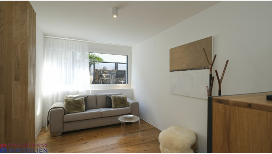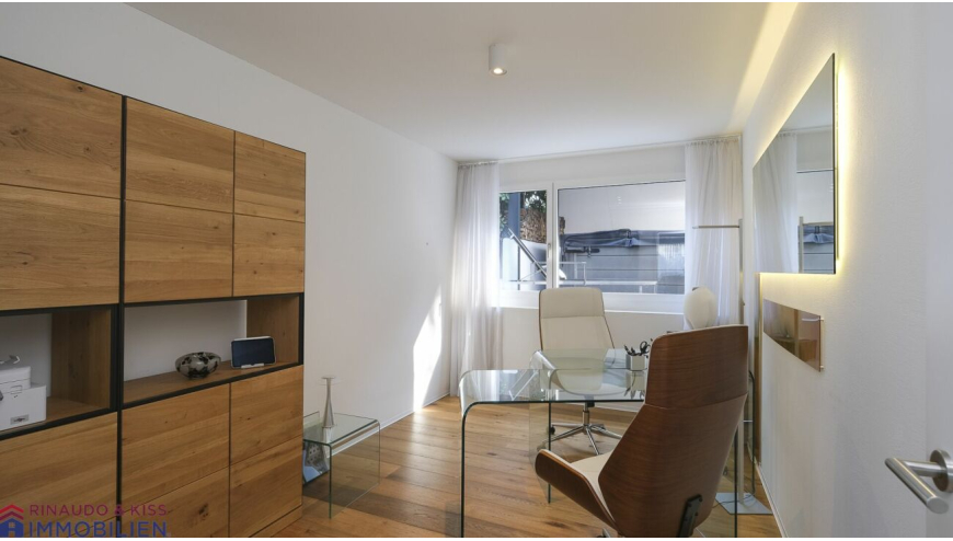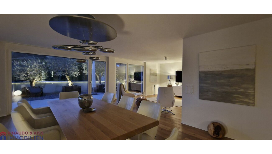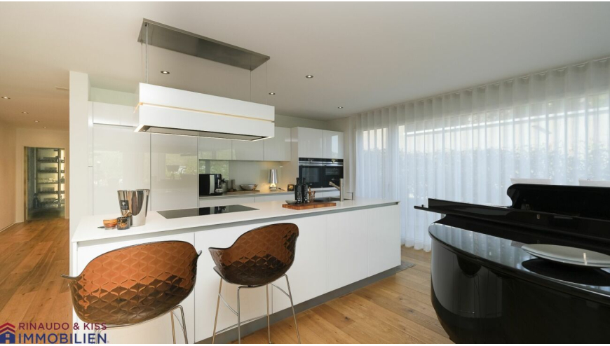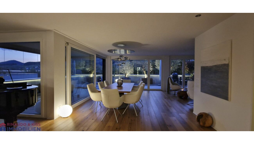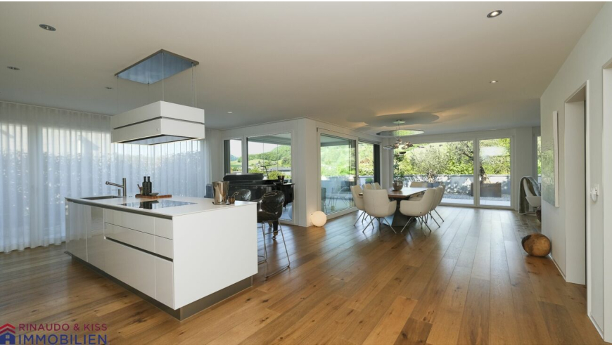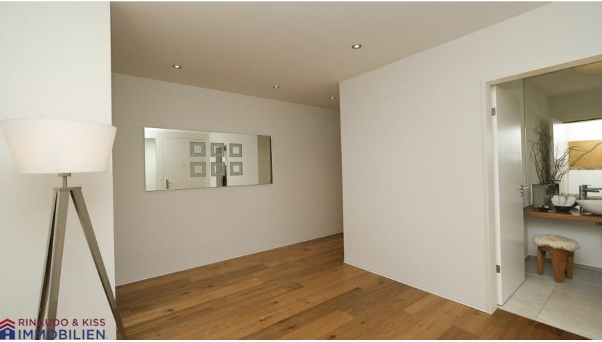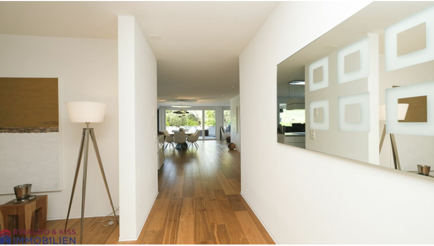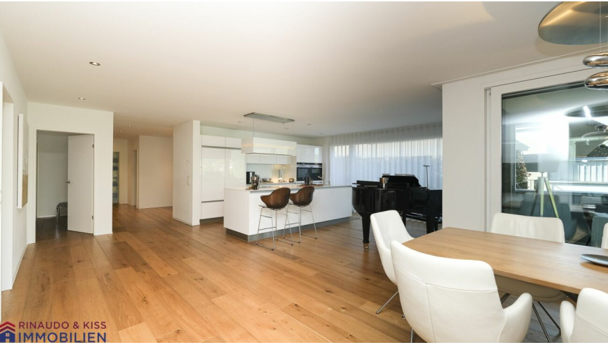 Von Aussen besticht die Liegenschaft durch die moderne, gradlinige Architektur und in diesem Stil wurde auch der Innenausbau gestaltet. Schon beim Betreten der Wohnung sieht man sofort, dass hier auf modernes Design mit wertvollen Materialien und besonderer Liebe zum Detail geachtet wurde. Klare Formen und eine elegante Farb- und Materialwahl machen diese Liegenschaft zu einer ausserordentlichen repräsentativen Wohnung.