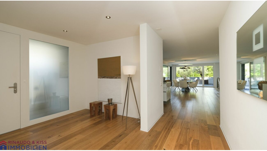 Grosszügige Räume, hochwertige Ausstattung in Verbindung mit dem Aussen- und Innenbereich der Liegenschaft machen diese exklusive Wohnung zu einem idealen Ort für jedes Alter.