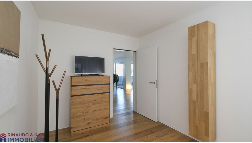 Die Zimmer haben den gleichen hochwertigen Ausbaustandard. Die schönen Holzböden ziehen sich einheitlich und schwellenlos durch die ganze Wohnung. Wertvolle Schreinerarbeiten ergänzen den attraktiven Innenausbau und verleihen der Liegenschaft Individualität und Stil (Einbauschränke, begehbare Garderobe, Waschtische in den Bädern). Selbstverständlich lassen sich die Räumlichkeiten ganz nach Ihren persönlichen Bedürfnissen nutzen.