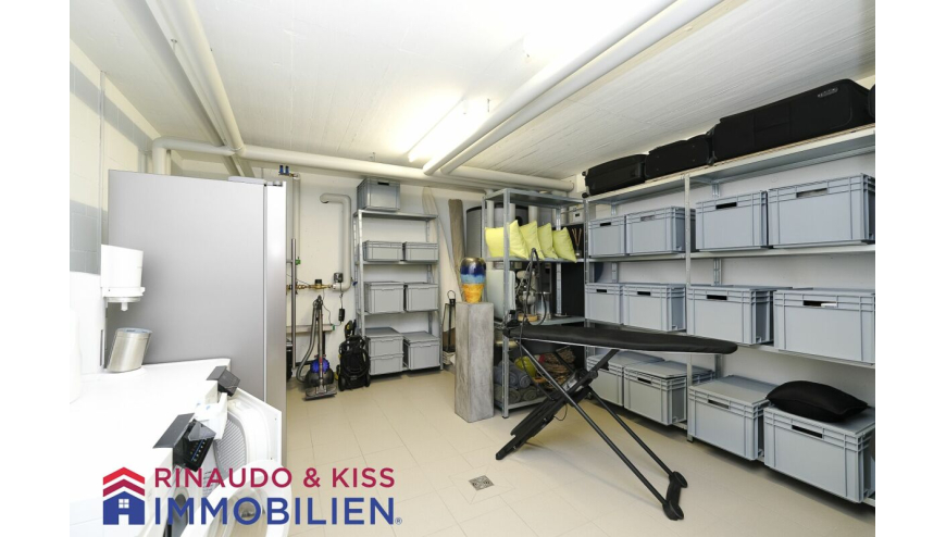 Die Haustechnik befindet sich im hinteren Bereich. In diesem Raum ist die Heizung, Waschmaschine / Tumbler sowie die Wasserenthärtungsanlage untergebracht. Dieser Bereich dient gleichzeitig als Stau- und Kellerraum.
