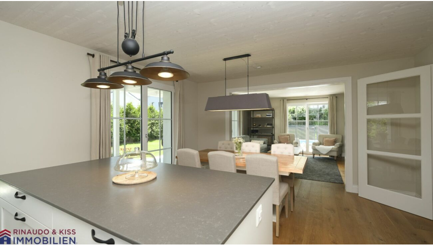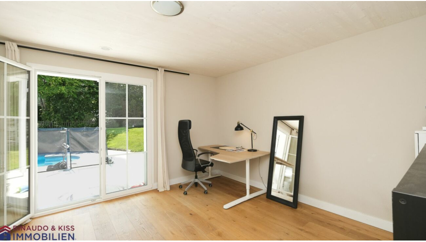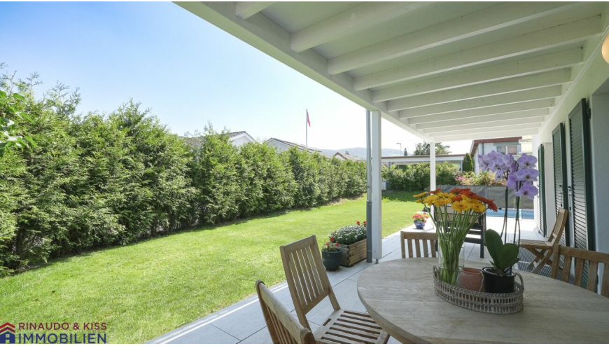 Das Herzstück im Innern dieser Liegenschaft bildet zweifellos der grosszügige Wohn- und Essbereich, welcher Weiträumigkeit aber auch Geborgenheit bietet. Von hier aus haben Sie direkten Zugang zum Aussenbereich. Das Wohnhaus wird von einer liebevoll angelegten und gepflegten Grünanlage umgeben. Im Sommer erweitert sich Ihr Wohnbereich mit dieser wunderschönen Aussenanlage.