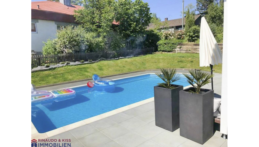 Sie haben einen gedeckten Sitzplatz auf der ganzen Gebäudelänge auf der Süd-Ost Seite und einen mit Plattenumgebenen Pool auf der Westseite des Hauses. Suchen Sie aus, wo Sie die Sonne oder den Schatten in dieser Gartenoase geniessen möchten. Je nach Ihren Bedürfnissen und Vorlieben nutzen Sie den Pool zum Schwimmen, Baden oder für andere Freizeitaktivitäten.