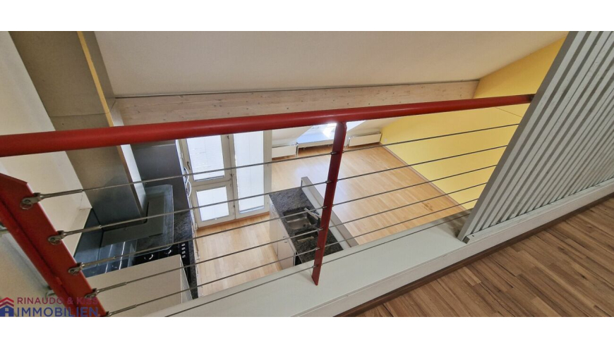 - Galerie und offener Wohnbereich in der Maisonettewohnung mit Blick auf die Altstadt.