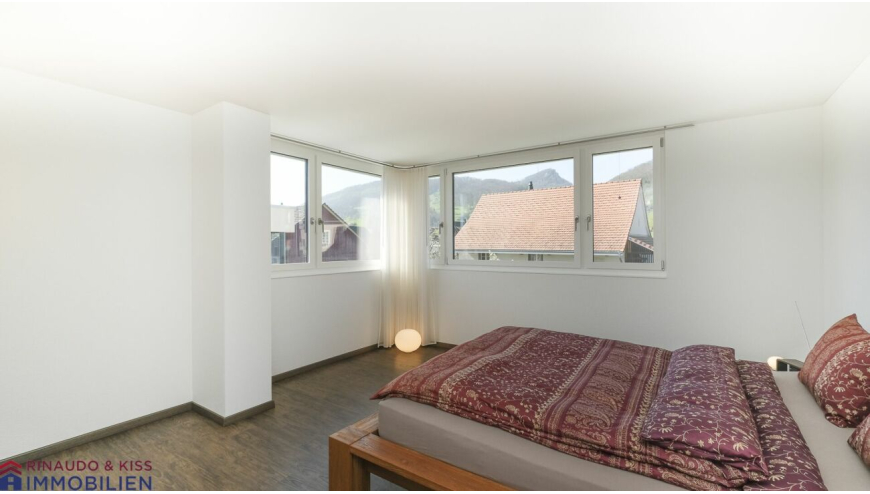 Im Obergeschoss befindet sich der Schlafbereich, bestehend aus einem Hauptschlafzimmer, einer Ankleide, einem Elternbadezimmer mit einer Badewanne und Dusche, einer WC/Dusche, einem Arbeitszimmer, einem Fitnessraum und einem Atelier. Selbstverständlich lassen sich die Räumlichkeiten ganz nach Ihren persönlichen Bedürfnissen nutzen.