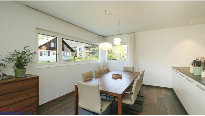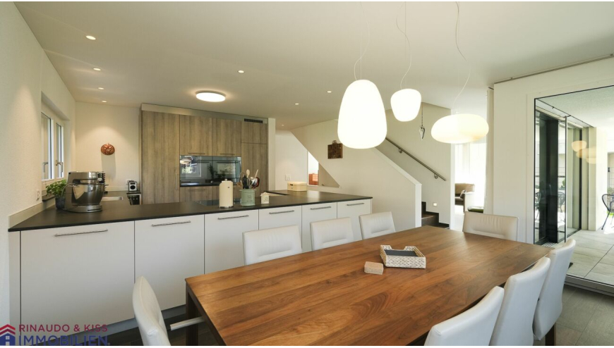 Grosszügige Räume, überdurchschnittliche Raumhöhe, hochwertige Ausstattung in Verbindung mit dem Aussen- und Innenbereich der Liegenschaft machen dieses exklusive Haus zu einem idealen Ort für jedes Alter.Von Aussen besticht die Liegenschaft durch die moderne, gradlinige Architektur und in diesem Stil wurde auch der Innenausbau gestaltet.